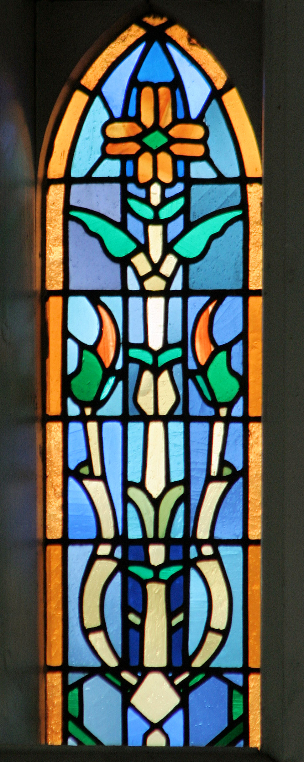 Fil:Årdal kyrkje, glasmåleri aust i skipet a, AMH 2009.jpg
