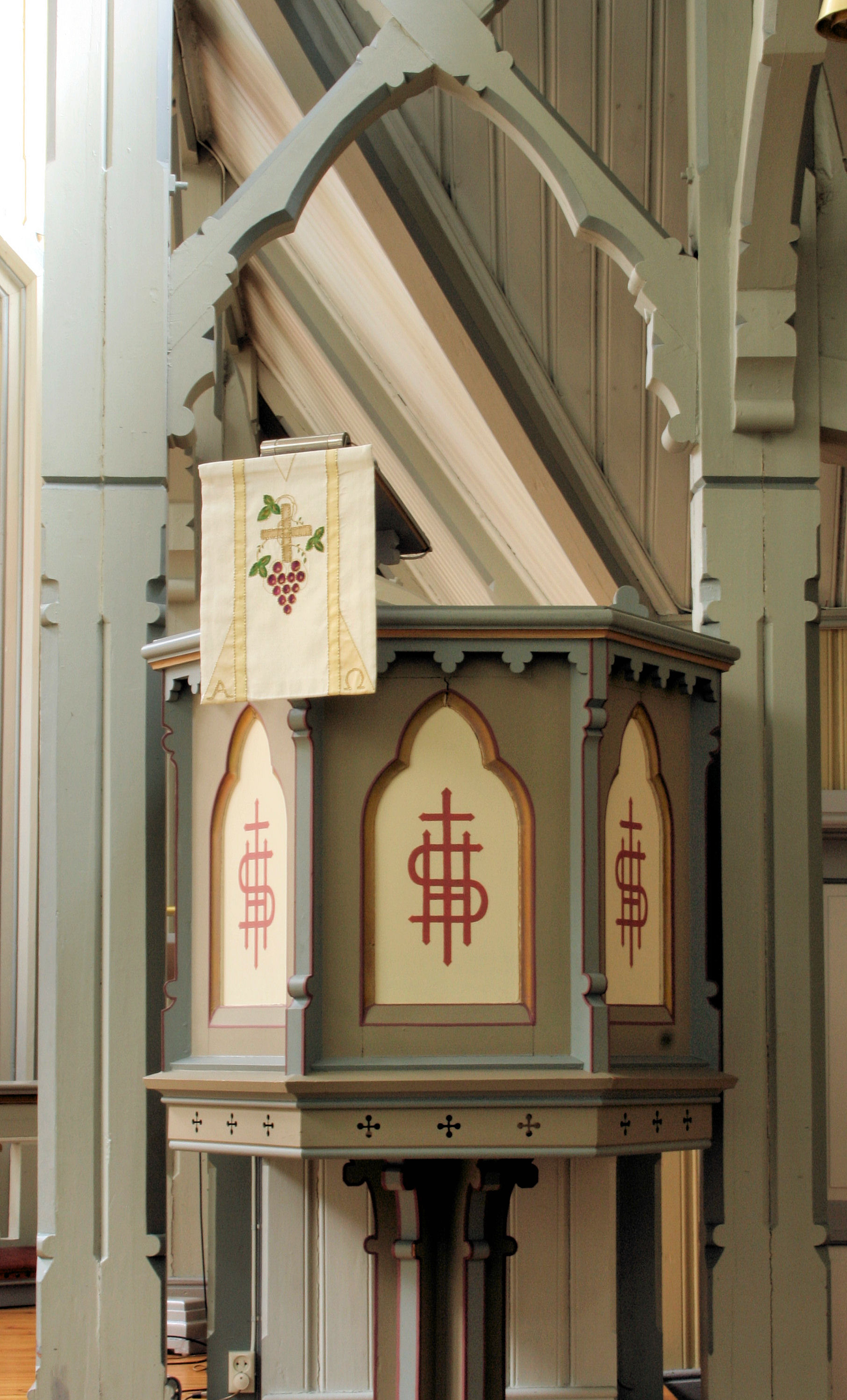 Fil:Årdal kyrkje, preikestolen sett frå vest, AMH 2009.jpg