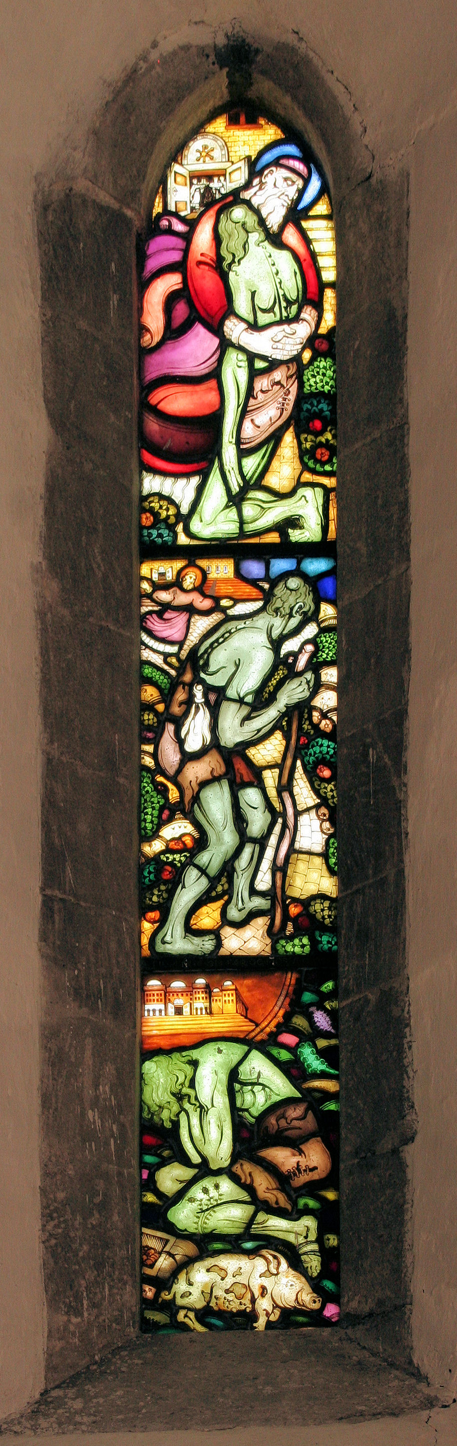Fil:Aurland kyrkje, glasmåleri sør i austmuren, AMH 2011.jpg