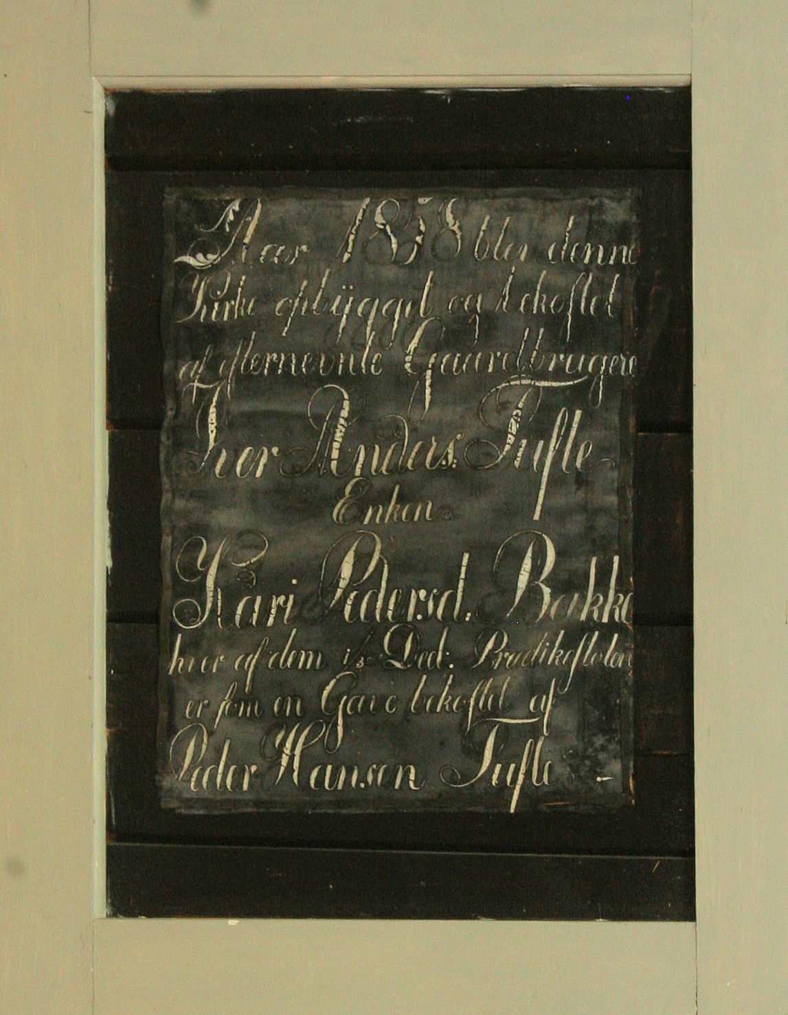 Fil:Bakka kyrkje, innskrift på nordsida i koret, AMH 2011.jpg