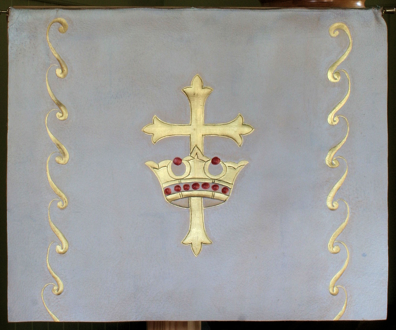 Fil:Bolstadøyri bedehus, preikestolklede, kvitt, AMH 2007.jpg