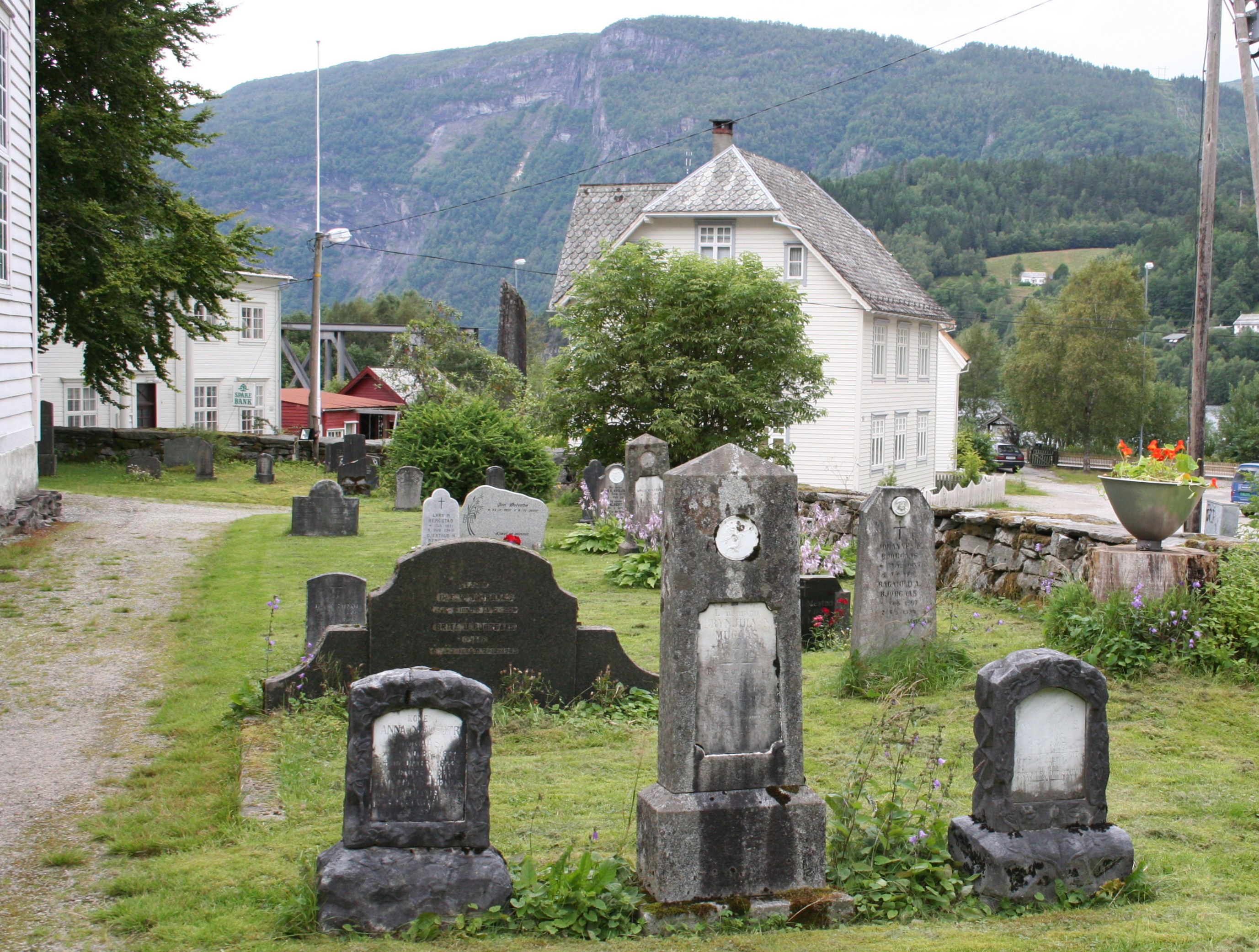 Fil:Evanger, kyrkjegarden, nordsida mot vest, AMH 2007.jpg