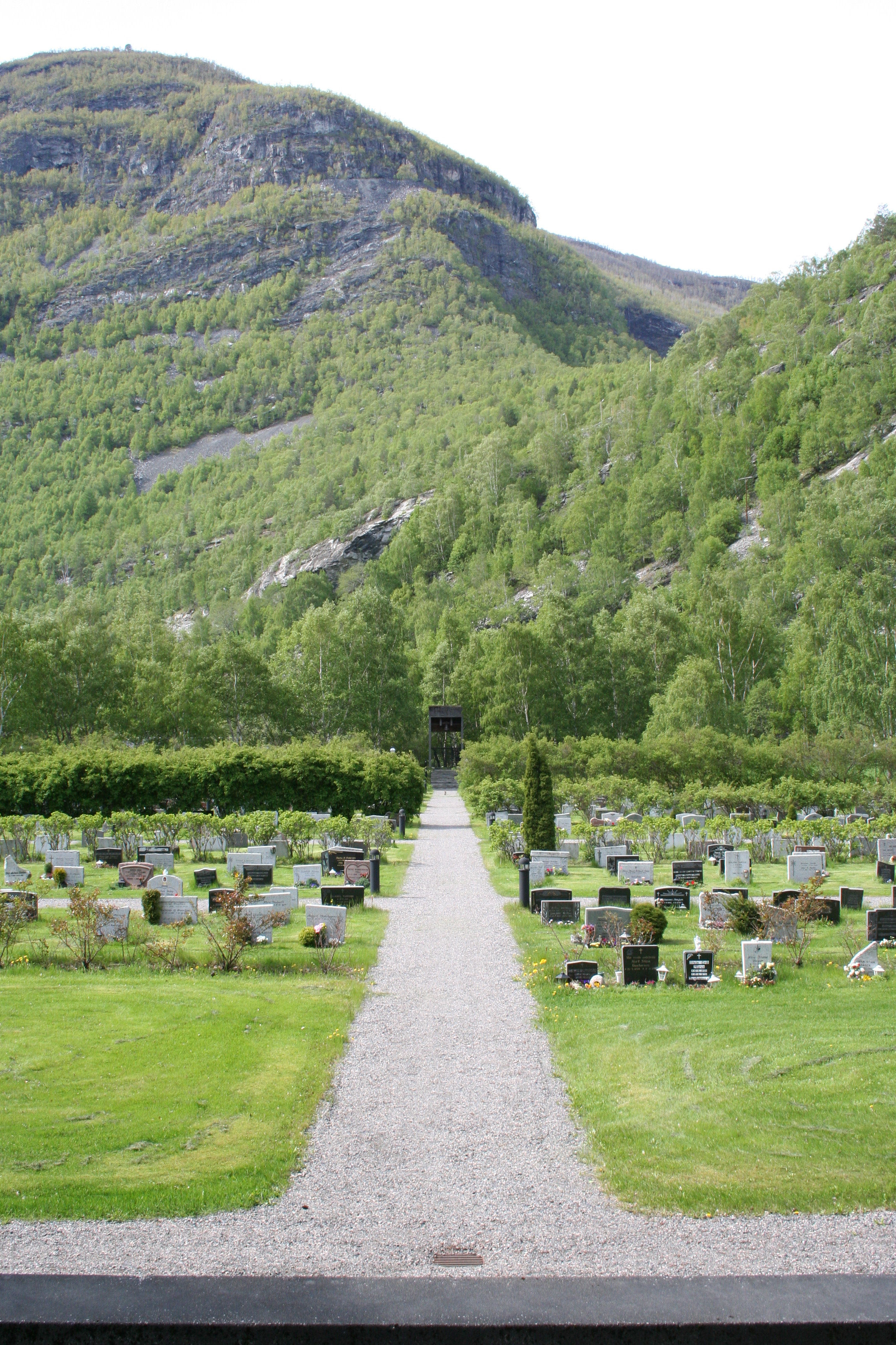 Fil:Farnes kyrkje, kyrkjegarden sett mot klokketårnet, AMH 2009.jpg