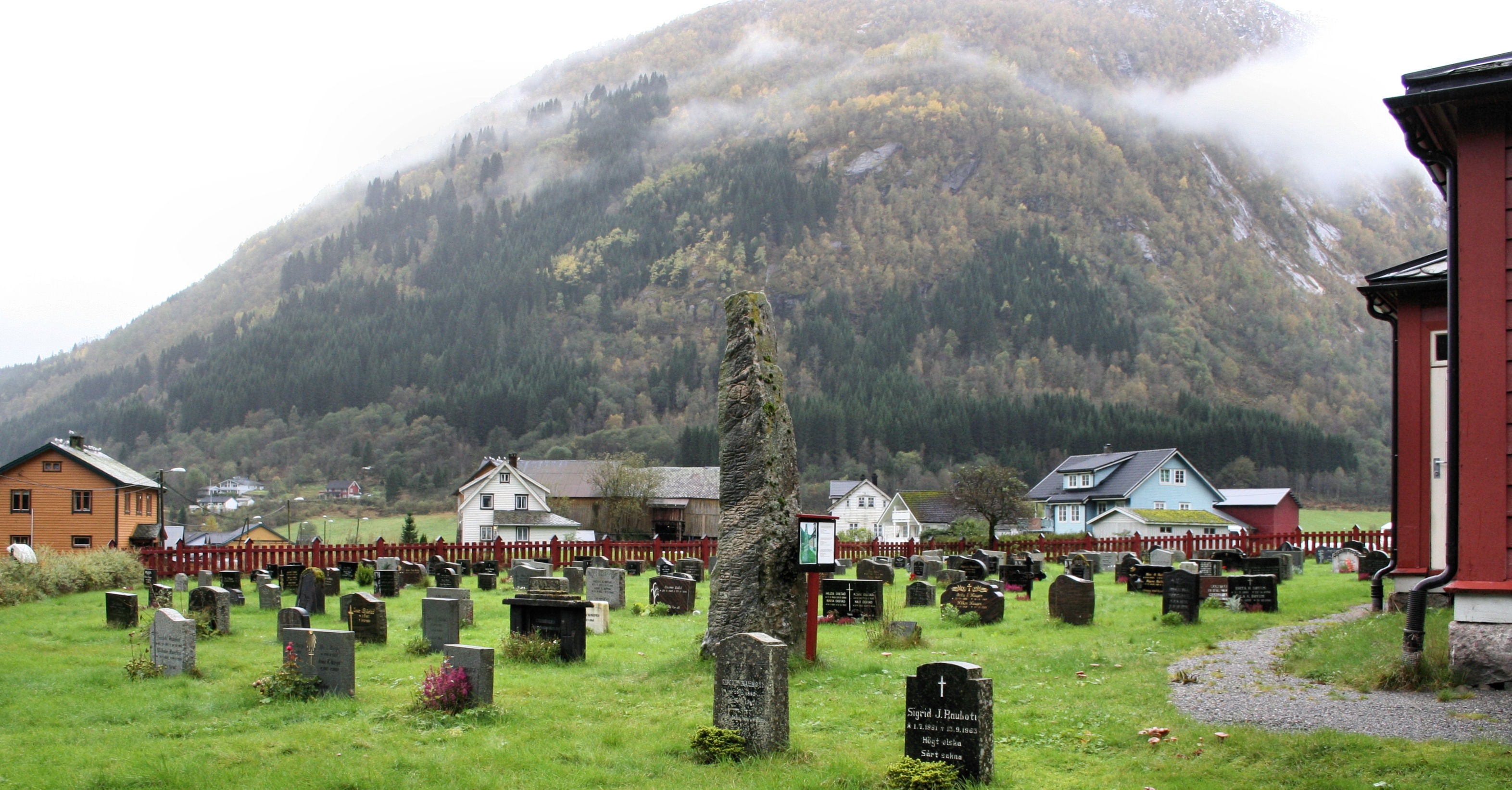 Fil:Fjærland, kyrkjegarden sør for kyrkja sett mot sørvest, AMH 2009.jpg