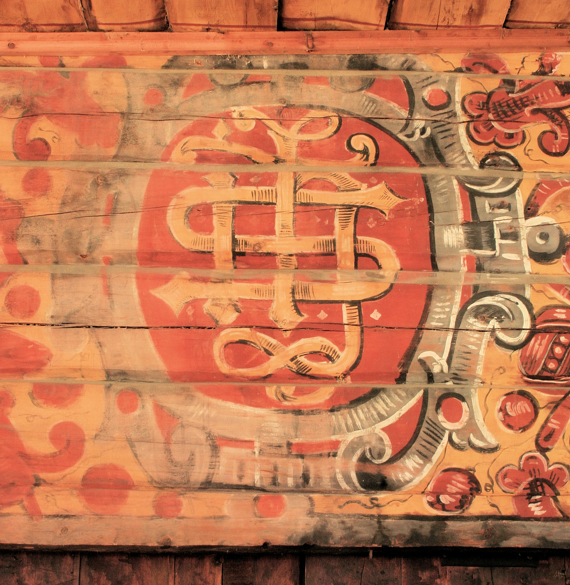 Fil:Gaupne gamle kyrkje, interiørmåleri over inngangsdøra i vest, AMH 2010.jpg