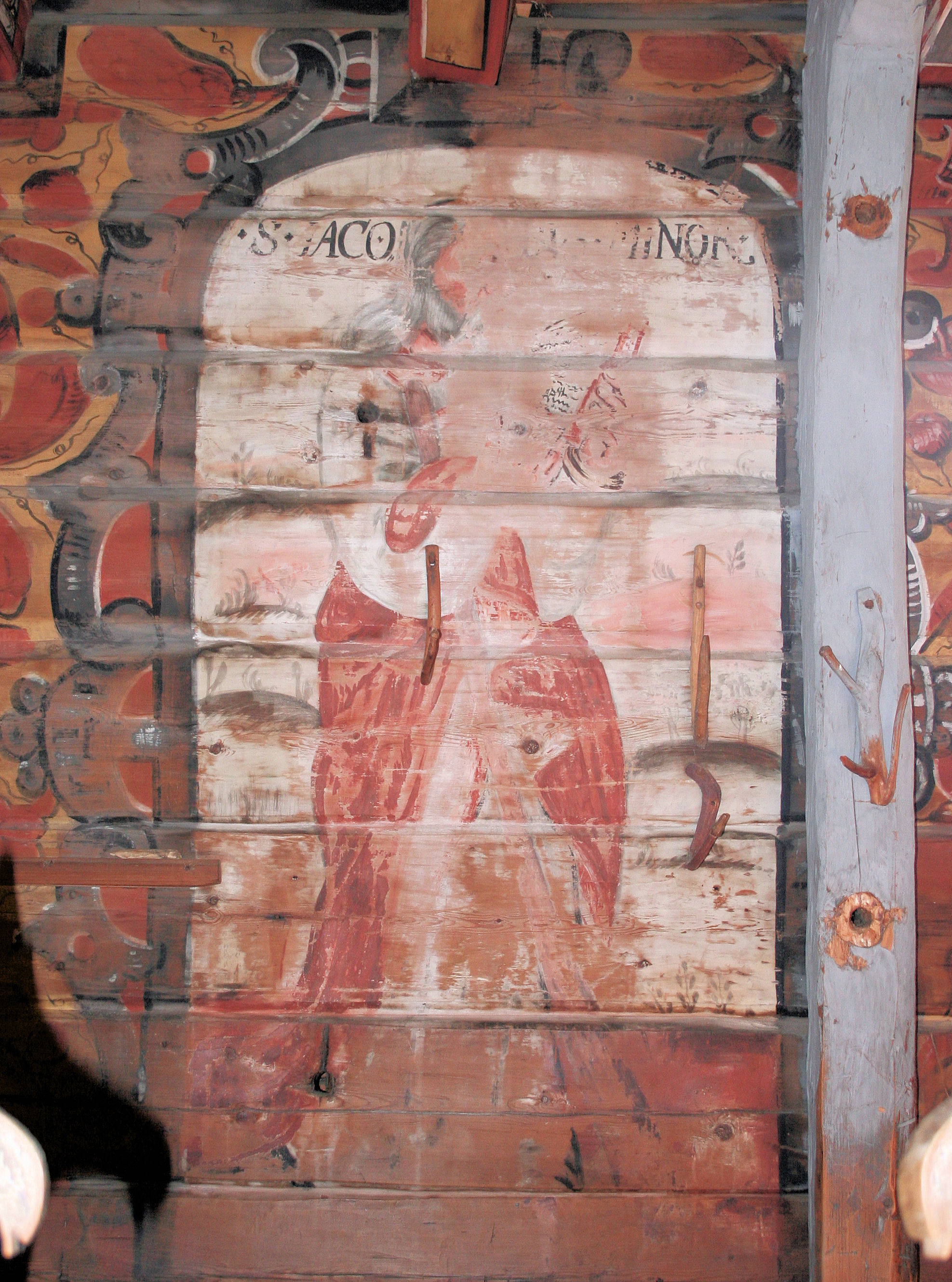 Fil:Gaupne gamle kyrkje, interiørmåleri på sørveggen i skipet 2, AMH 2010.jpg