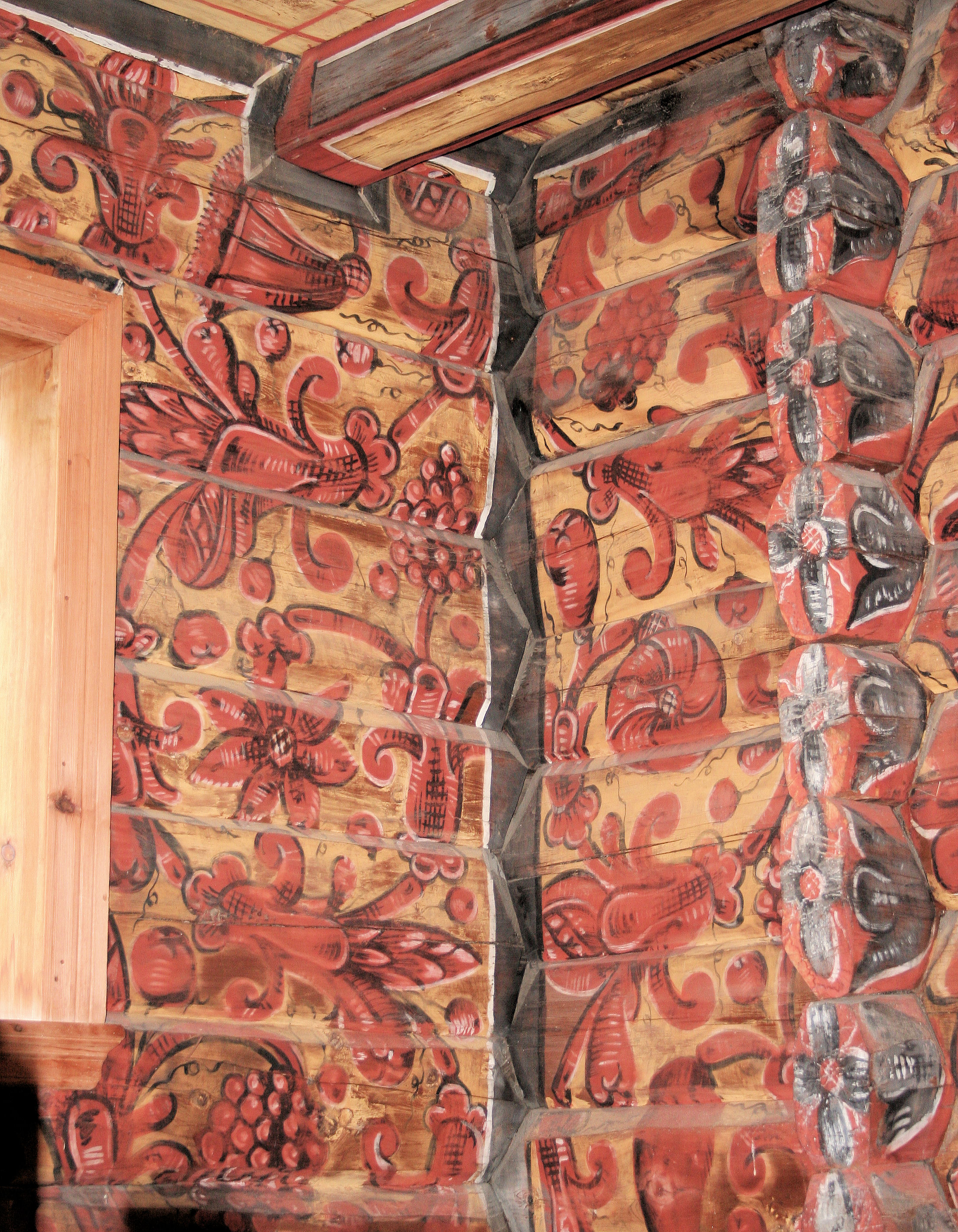 Fil:Gaupne gamle kyrkje, interiørmåling i skipetm nordaustre hjørne, AMH 2010.jpg