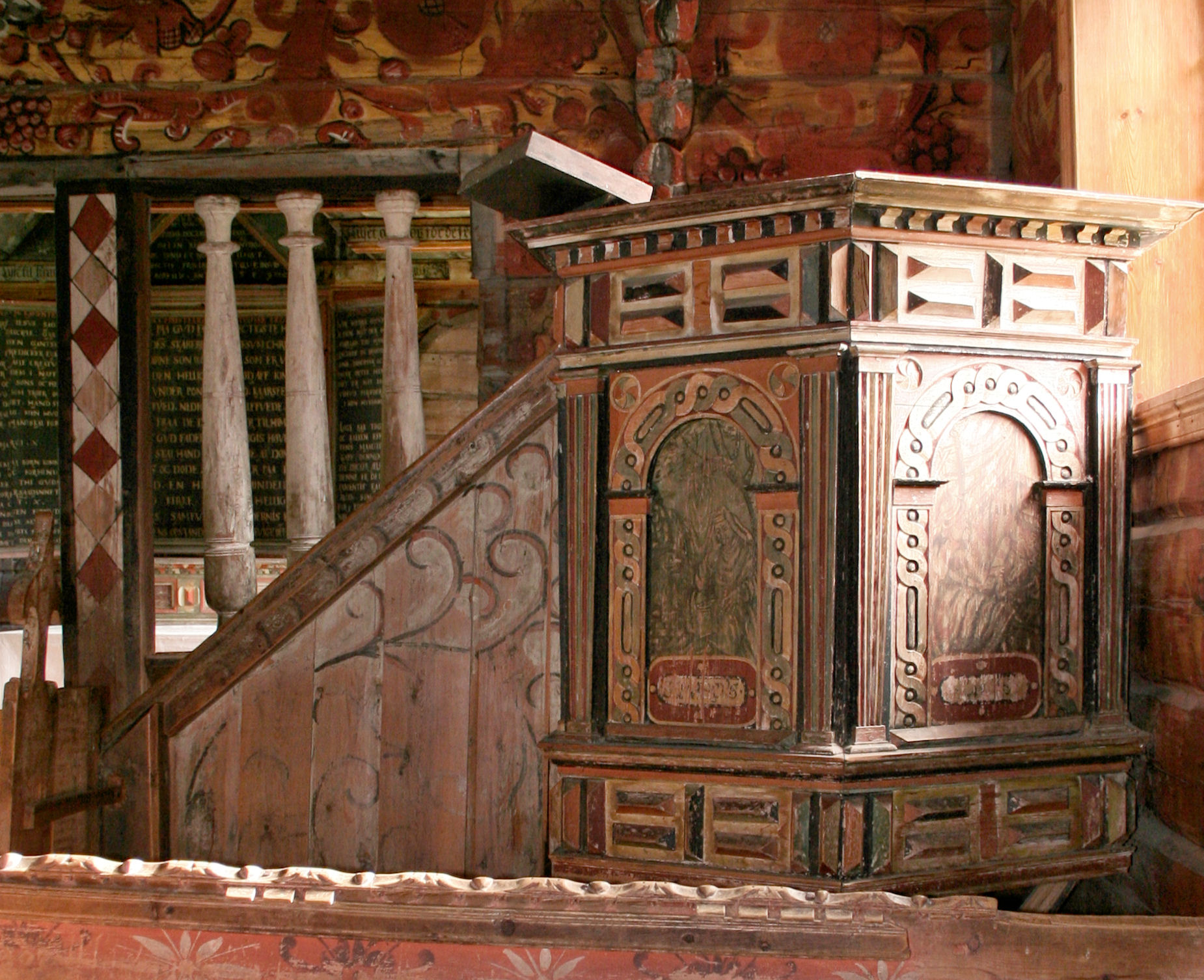 Fil:Gaupne gamle kyrkje, preikestolen, AMH 2010.jpg