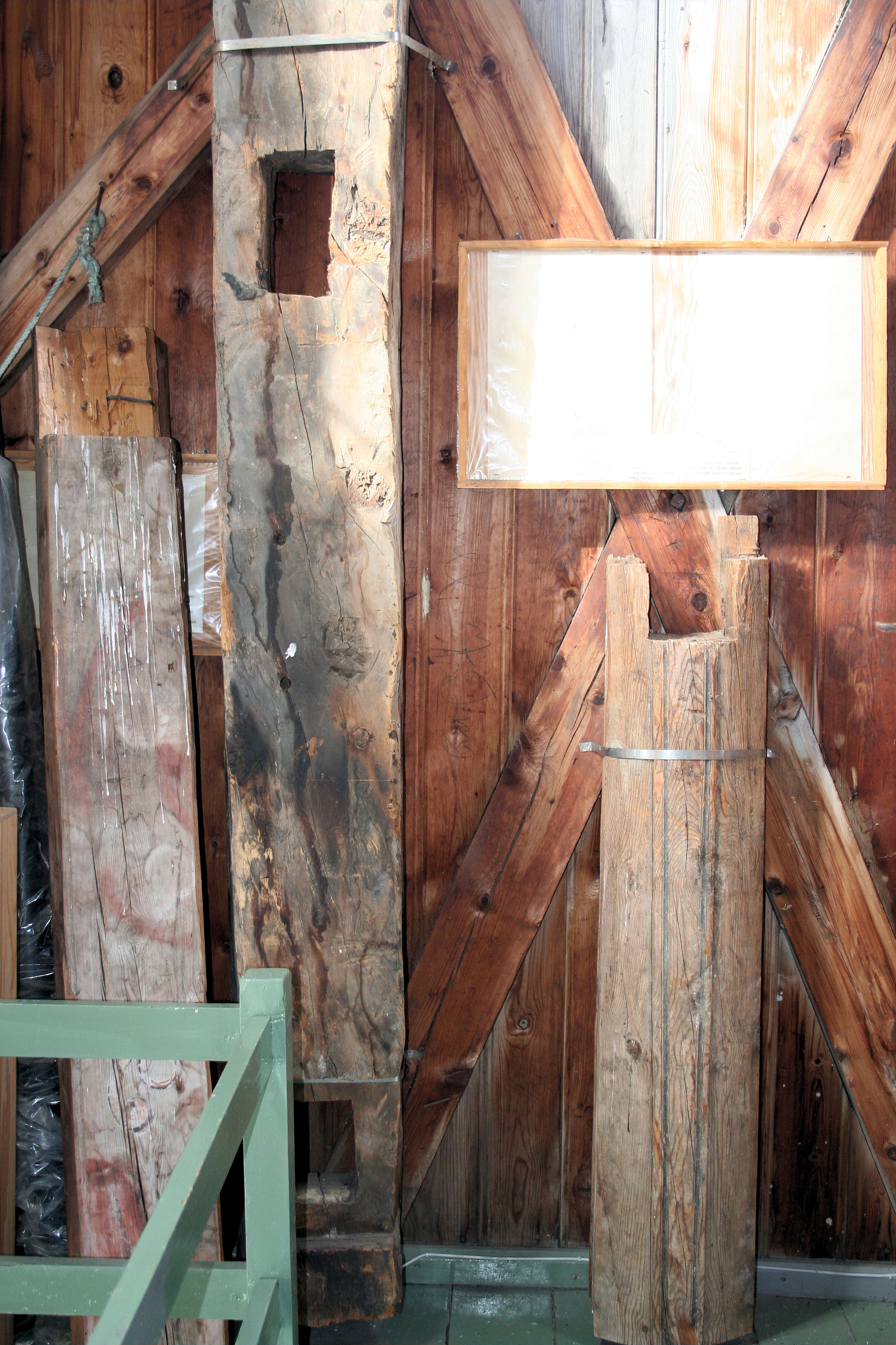 Fil:Hafslo kyrkje, delar frå stavkyrkja, lagra i fårnet, AMH 2011.jpg