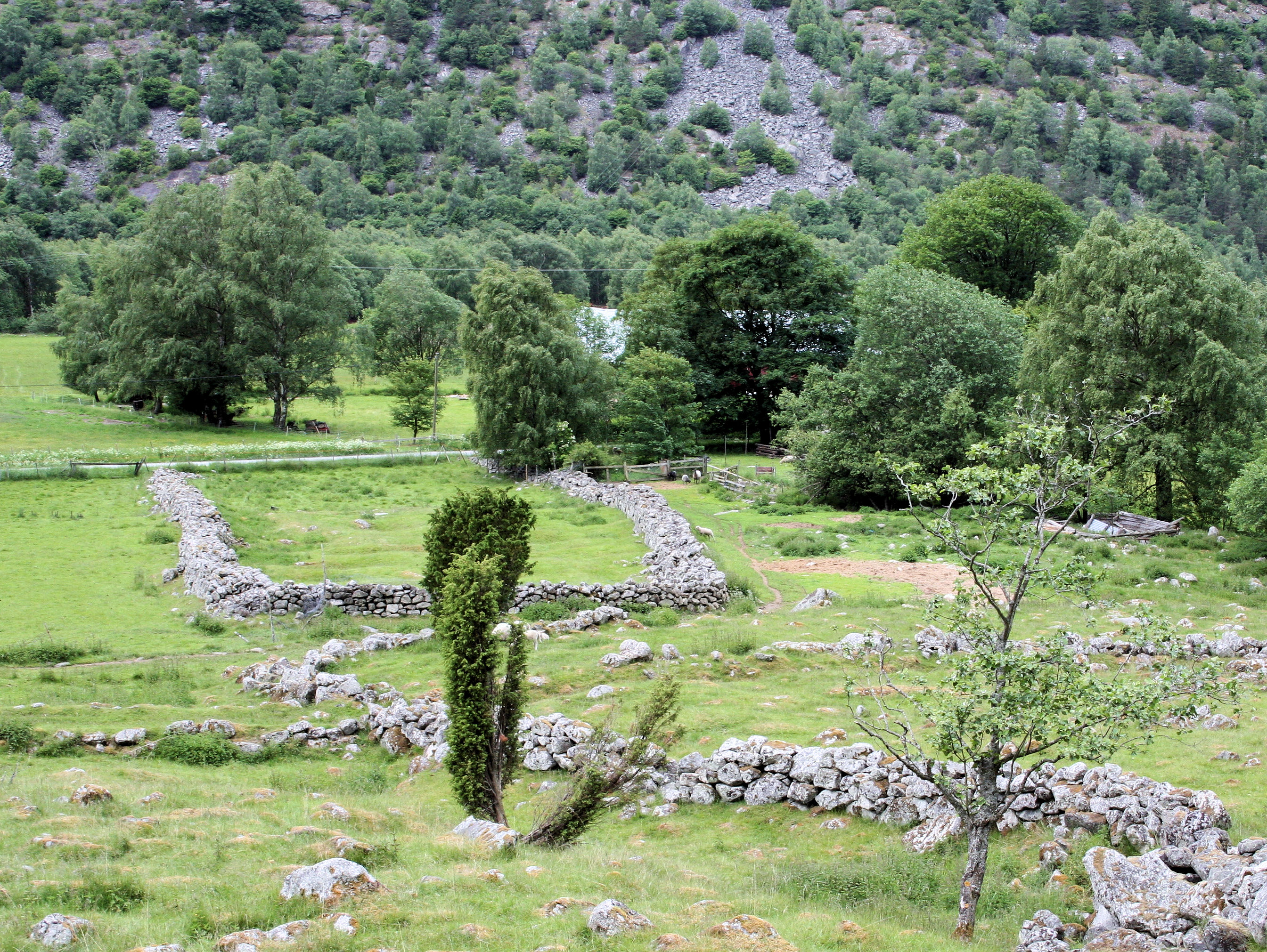 Fil:Hauge, tidlegare kyrkjestad sett mot garden Hauge, AMH 2009.jpg