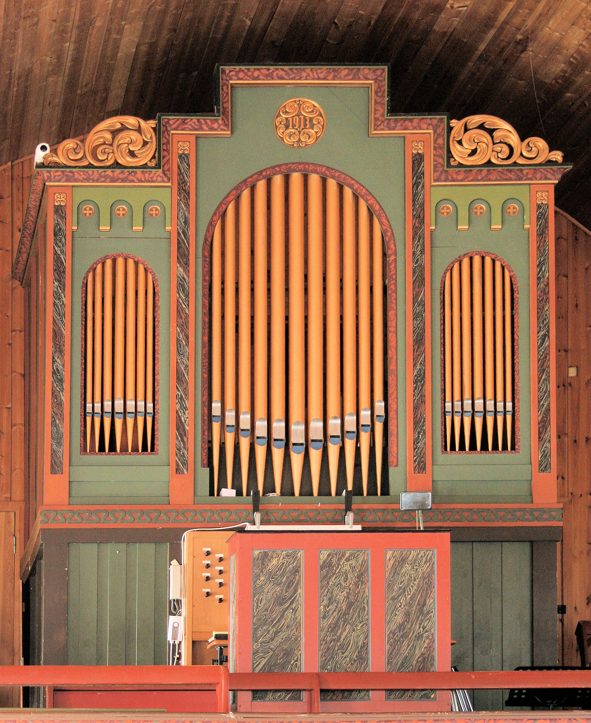 Fil:Leikanger kyrkje, orgelfasaden, AMH 2011.jpg