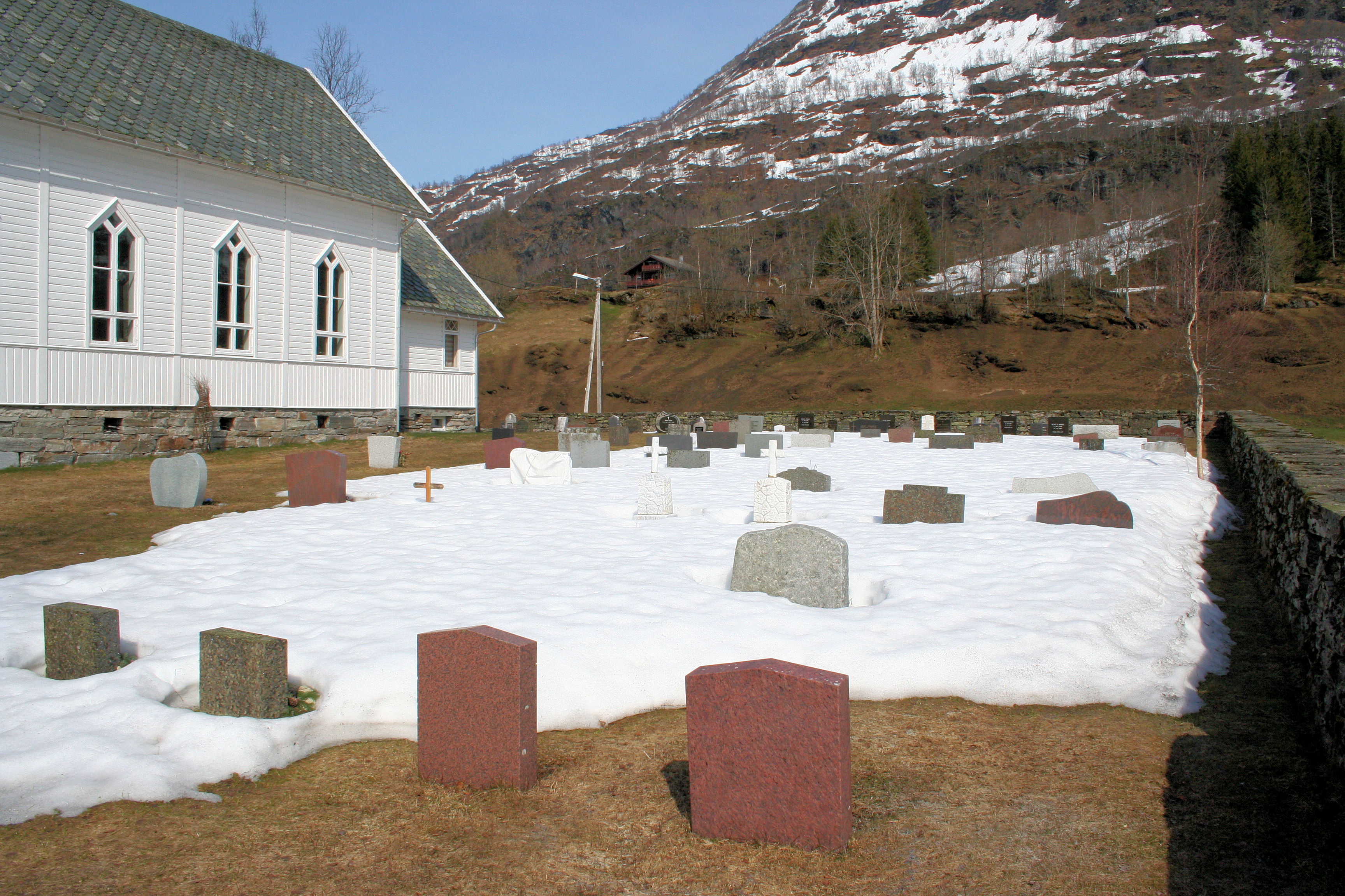 Fil:Nesheim, kyrkjegarden sør for kyrkja, mot aust, AMH 2008.jpg
