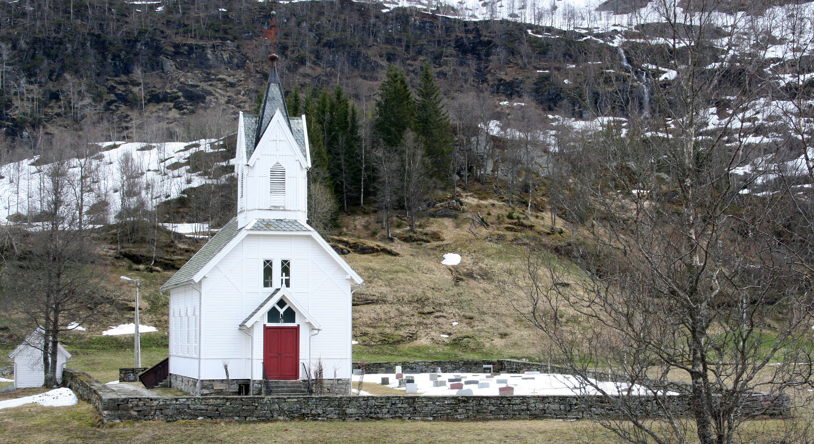 Fil:Neshim kyrkje, kyrkja og kyrkjegarden sett frå vest, AMH 2008.jpg