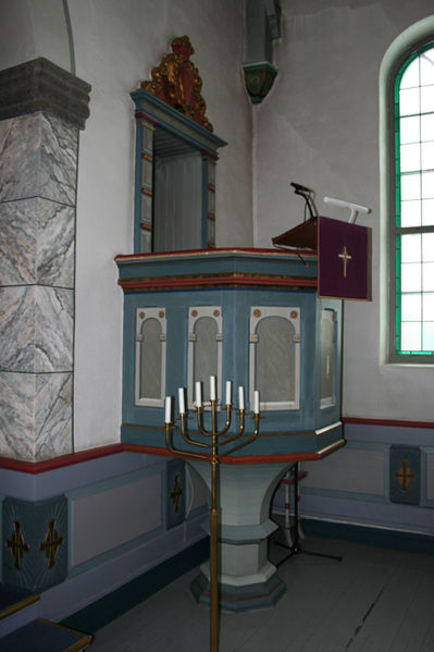 Fil:Råholt kirke Prekestol 1.jpg