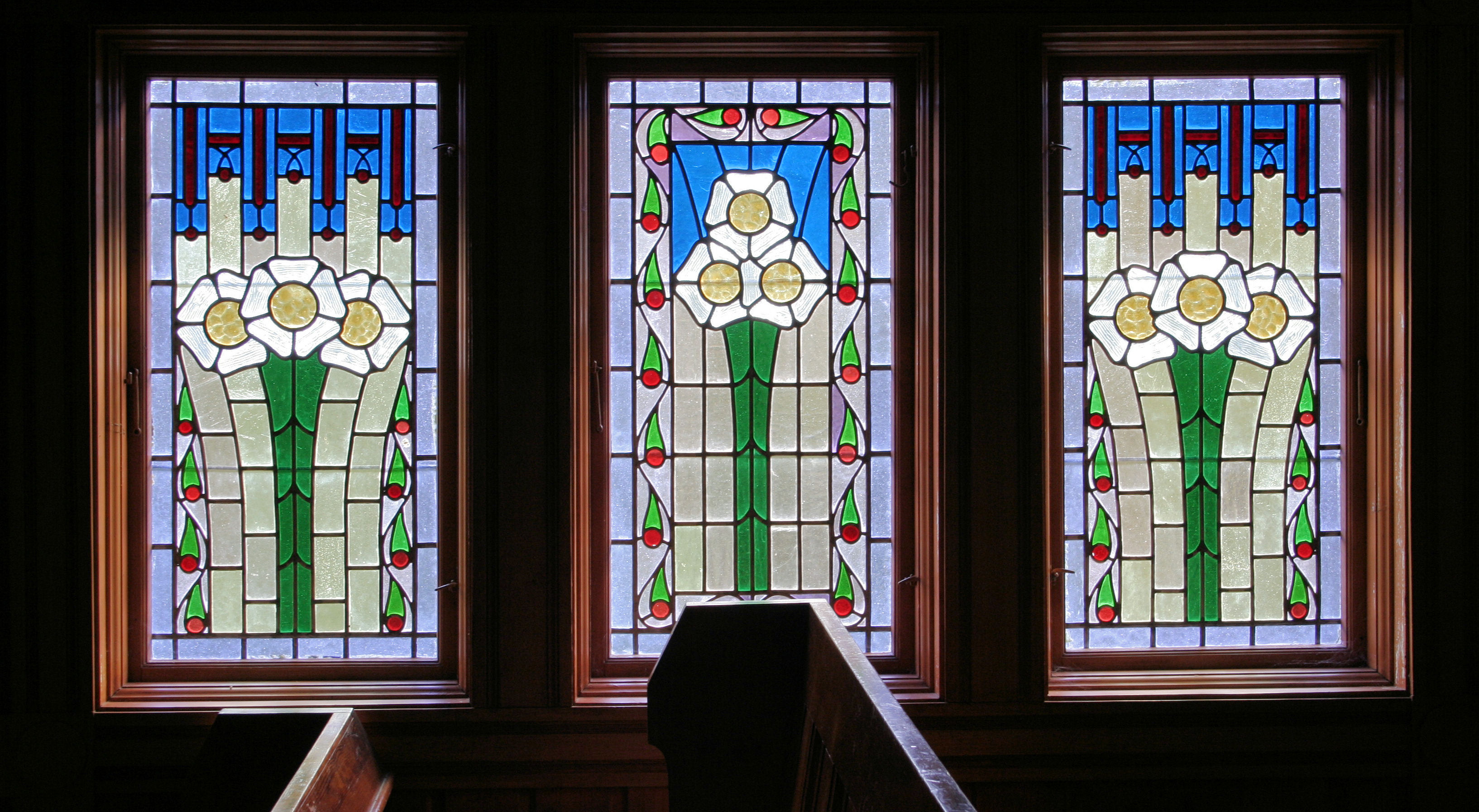Fil:Raundalen, glasmåleri i klerestorievindauge i skipet, AMH 2007.jpg