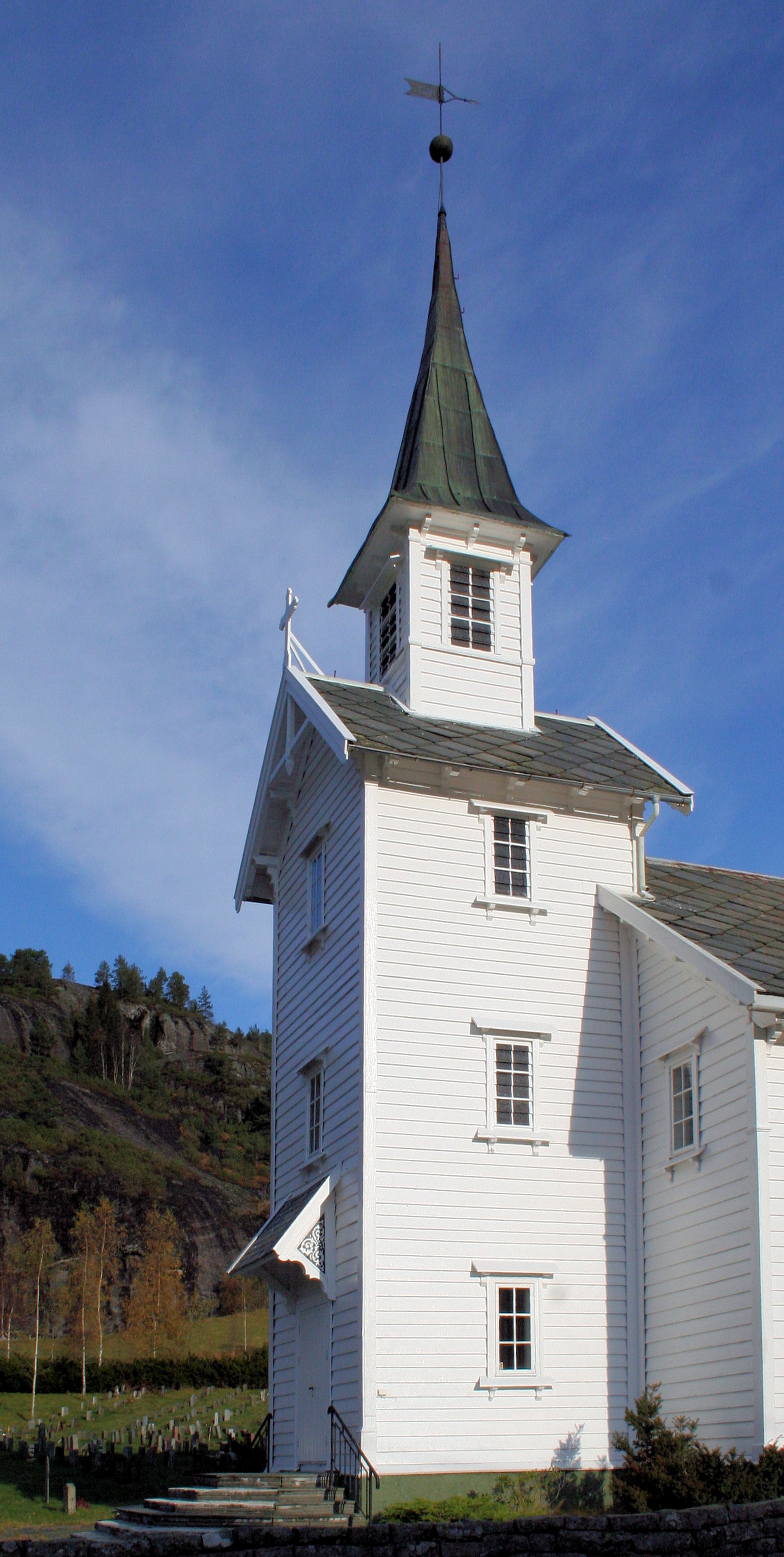 Fil:Stamnes kyrkje, vestårnet sett frå sørvest, AMH 2008.jpg