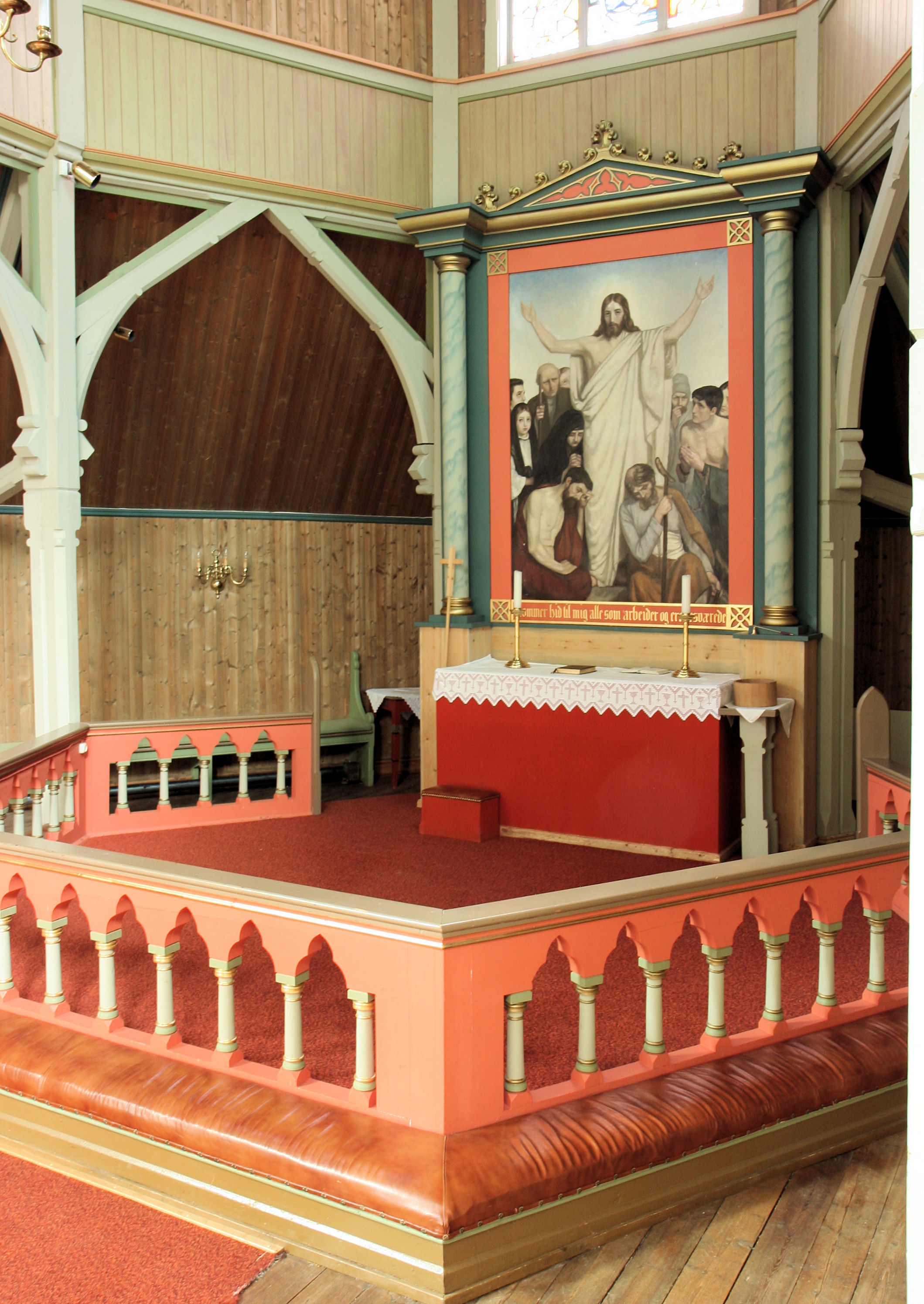 Fil:Stedje kyrkje, altar, altartavle og altarring, AMH 2009.jpg