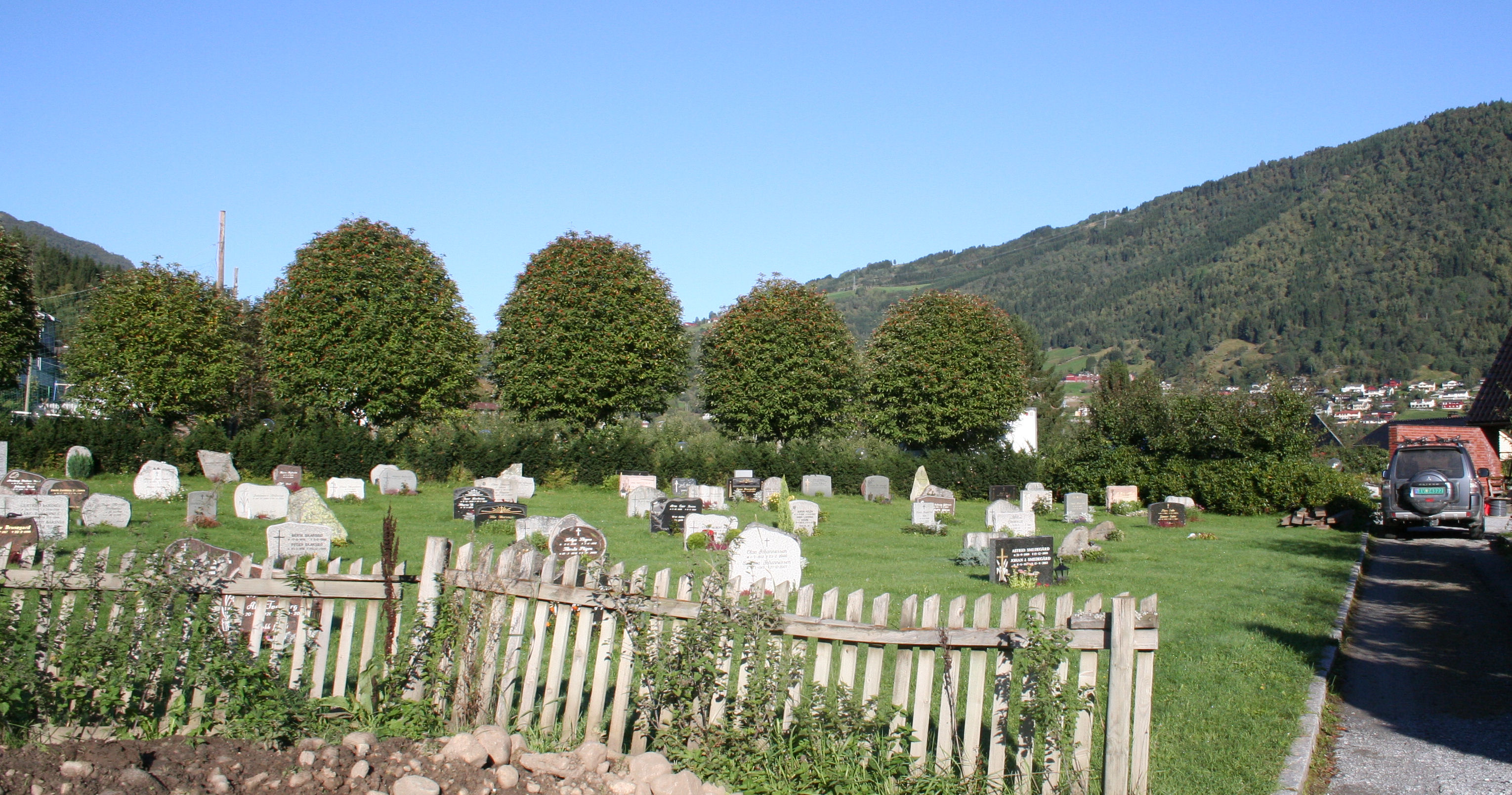 Fil:Stedje kyrkje, kyrkjegarden nordvest for kyrkja, AMH 2009.jpg