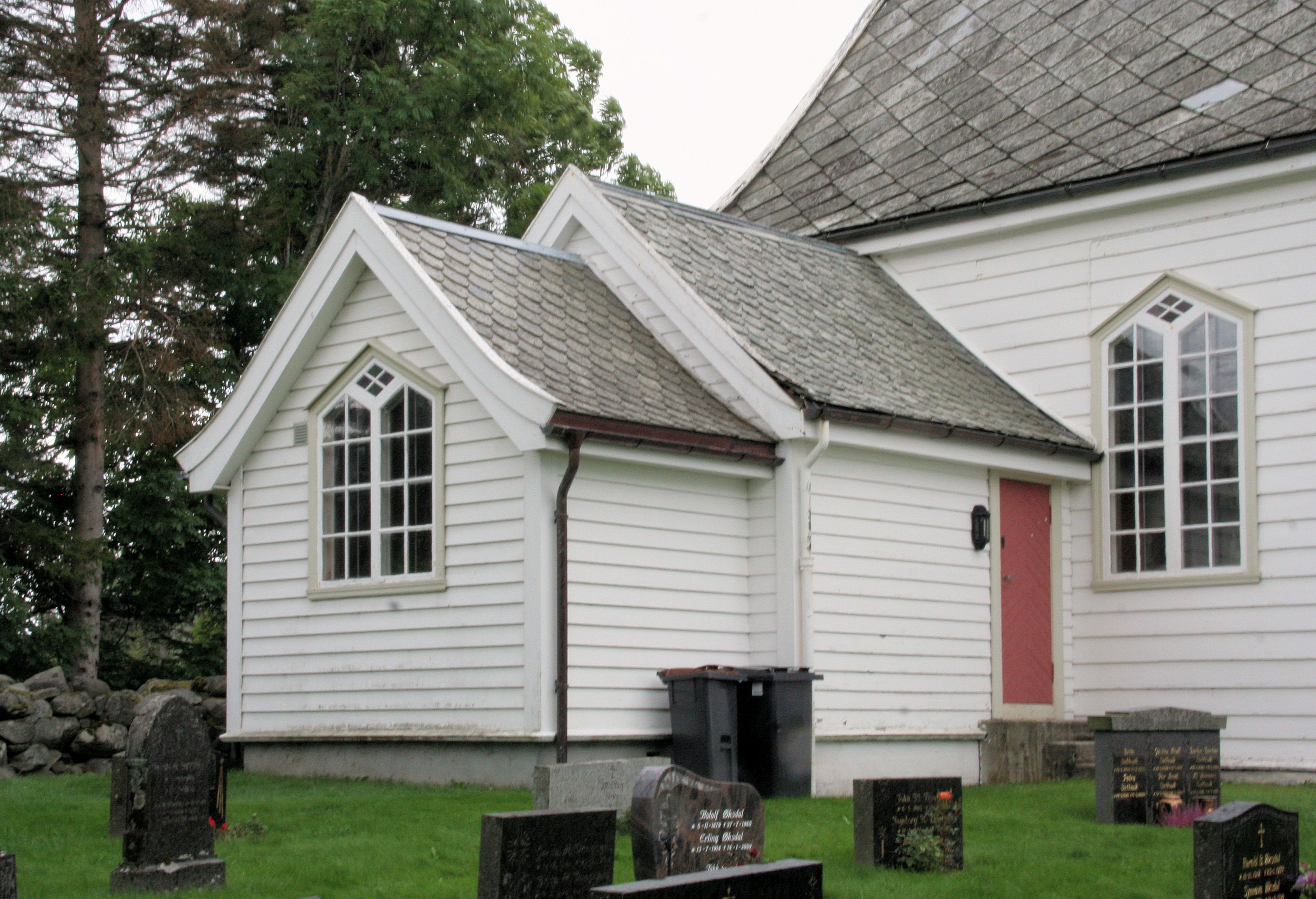 Fil:Vangsnes kyrkje, sakristitilbygget sett frå nordvest, AMH 2012.jpg