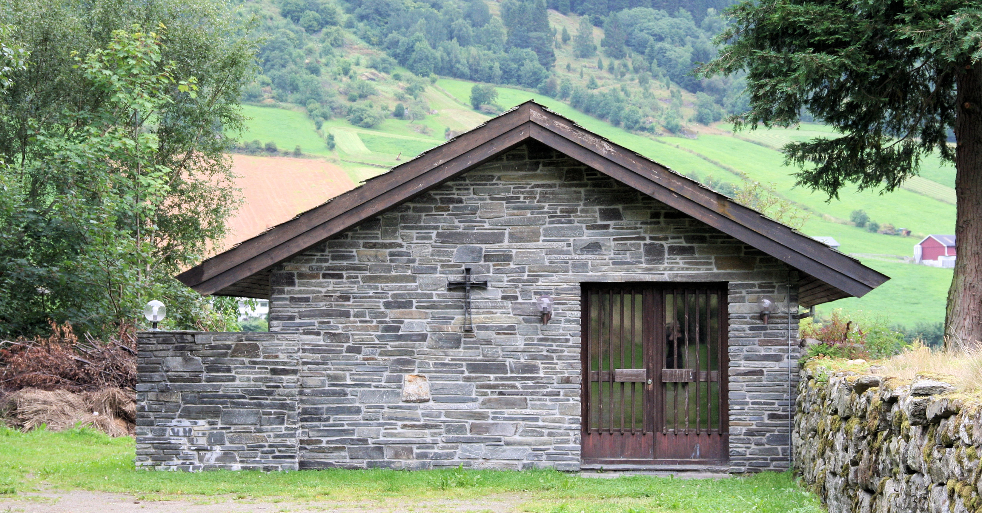 Fil:Vik kyrkje, steinhus nordaust for kyrkja, AMH 2012.jpg