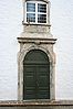 De fire små portalene under vinduene i fasaden mot Strandgaten er innpasset vindusnisjene. Nisjerommet under vinduene er utfylt av portalenes kleberinnfatning. Portalenes vanger og segmentbuer markeres av et pålagt profilledd som kun brytes av buenes markerte sluttstein. Portalene krones av vinduenes utkragende sålbenkstein.