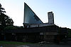 Over kirkerommets lave veggmurer hever seg et bratt tak i form av to dobbeltkrummede skallkonstruksjoner. De bæres av en høy, slank betongpilar som står i grunnplanens topp-punkt, samt en skråstilt dobbel drager fra toppen av pilaren og ned til partiet over inngangsdøren. Takflatene er sammensatt av betongelementer som av akustiske grunner er riflet på innsiden. Hvert av elementene er armert med en spent kabel. Taket er tekket med kopperplater. Over menighetssalene er det flatt tak.