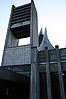 Selve kirkerommet har tresidet grunnplan med alteret i trekantens toppunkt i øst. Vest for kirkerommet ligger en rektangulær bygningsdel som inneholder sakristier og to menighetssaler. Kirken har hovedinngang midt på vestsiden. Forhallen medregnet går den tvers gjennom den vestre bygningsdel og har form av en dyp, uttrappende baldakin med et frittstående klokketårn over.